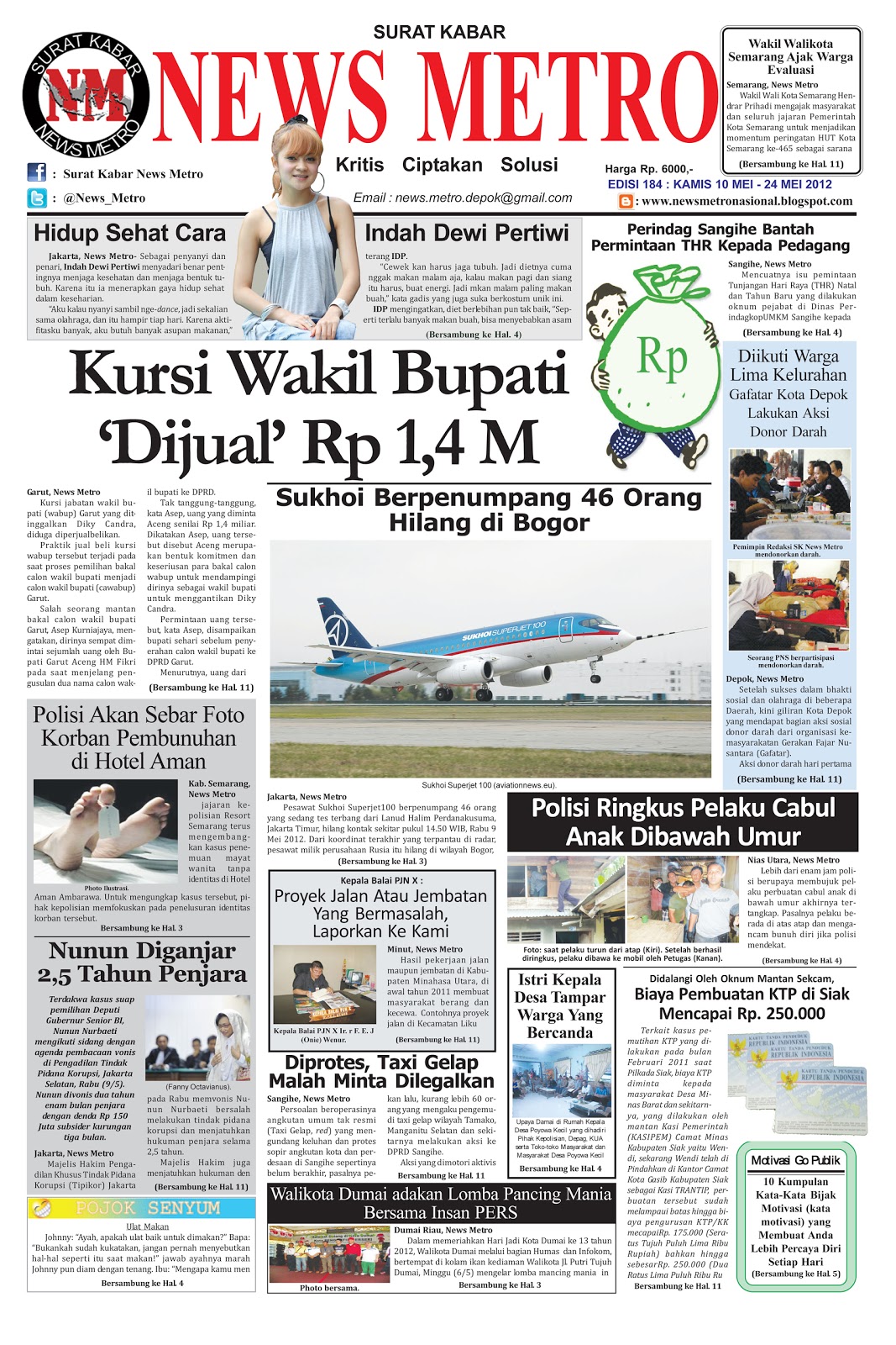 HOT NEWS Tampilan Depan News Metro Edisi 184 10 Mei 2012 Redaksi 18 Views BACA JUGA LAMAHOLOT KARIMUN DIKUKUHKAN