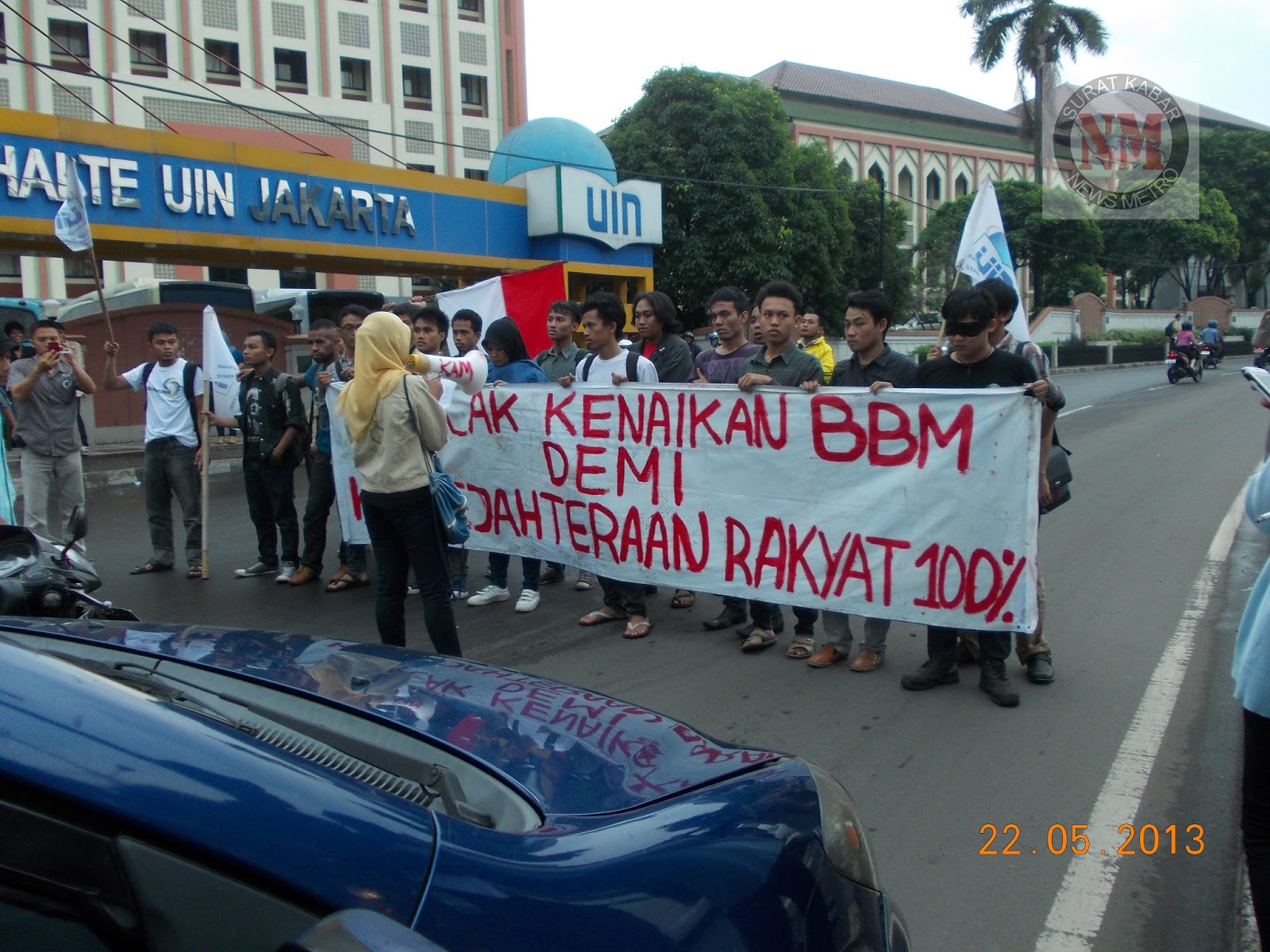 Maka kami , GM-I, KAMJAK, LKBHMI dan BEM FISIP UIN yang tergabung dalam Keluarga Besar Mahasiswa (KBM UIN Jakarta) menolak keras kenaikan harga BBM demi Mensejahterakan rakyat,salah satu pendemo menutup orasinya (yusmanH)