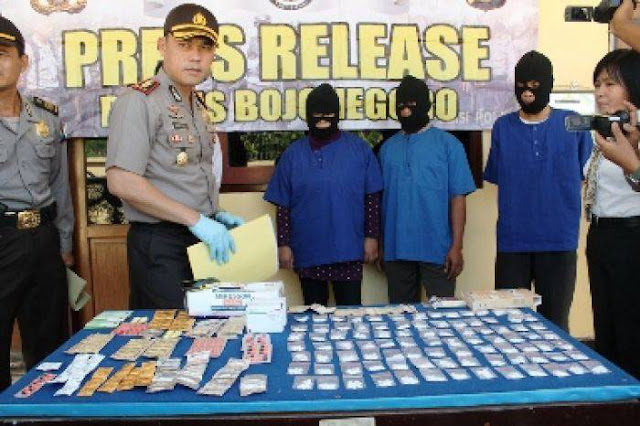 Hal yang sama dilakukan juga oleh polres Bojonegoro yang berdasarkan laporan masyarakat berhasil menangkap serta menyita 980 butir obat daftar G dari tangan tiga pelaku.