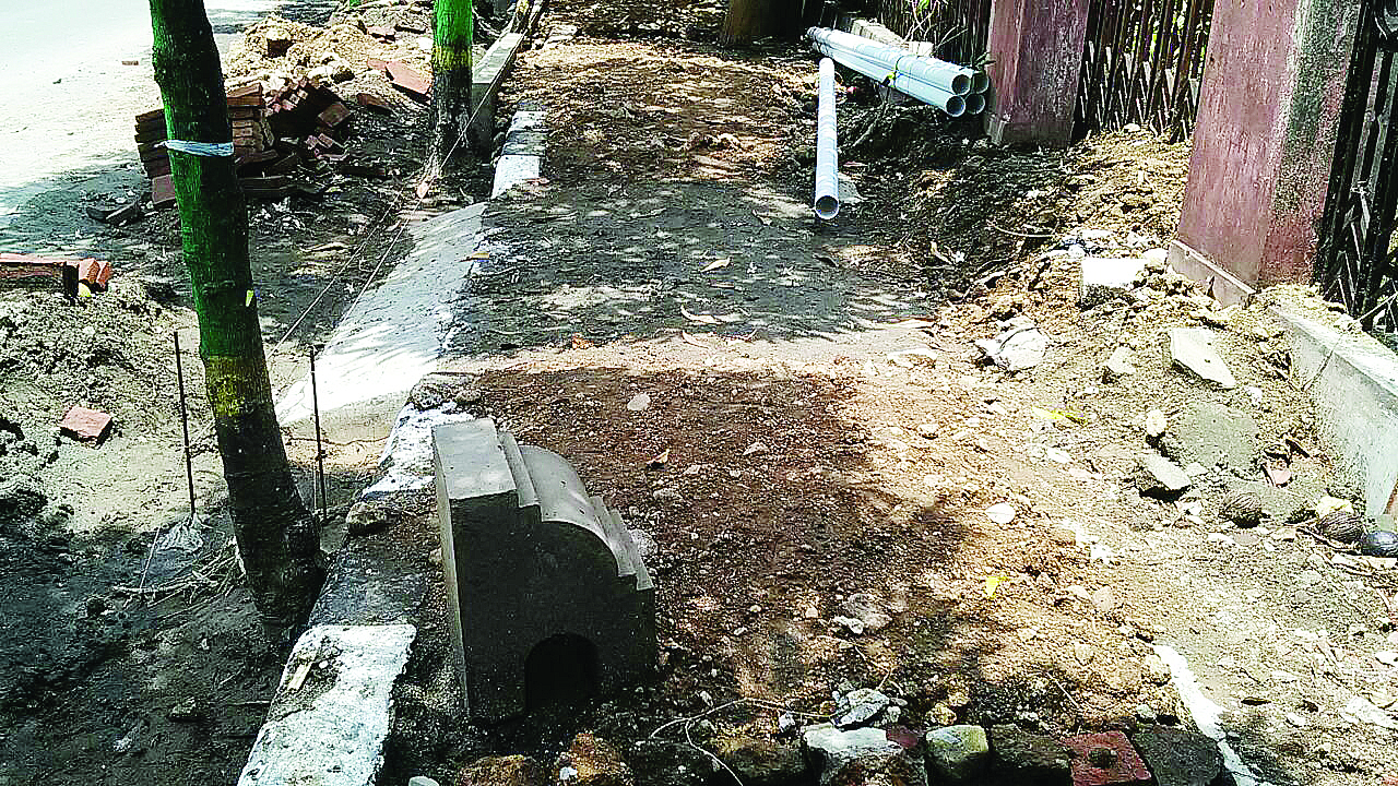 Bukti bahwa proyek tersebut dikerjakan secara asal – asalan, terlihat dari adanya pengurukan tanah merah setebal kurang lebih 10 cm sebelum pemasangan paving block atau conbloc.