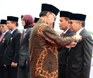 Bupati Pati menerima tanda penghragaan Satyalancana Wira Karya dari Presiden Jokowi melalui Mendagri Tjahyo Kumolo