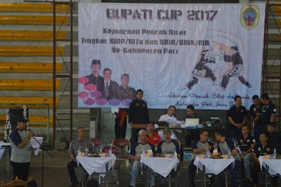 Sambutan sekaligus pembukaan Pencak silat oleh Wakil bupati Pati pada intinya bahwa, kegiatan pencak silat ini salah satu untuk mengukur prestasi pelajar, saya ucapkan terimaksih kepada para pembina dam pelatih sehingga dapat mencetak atlet yg berprestasi, saat bertanding kita junjung sportivitas.