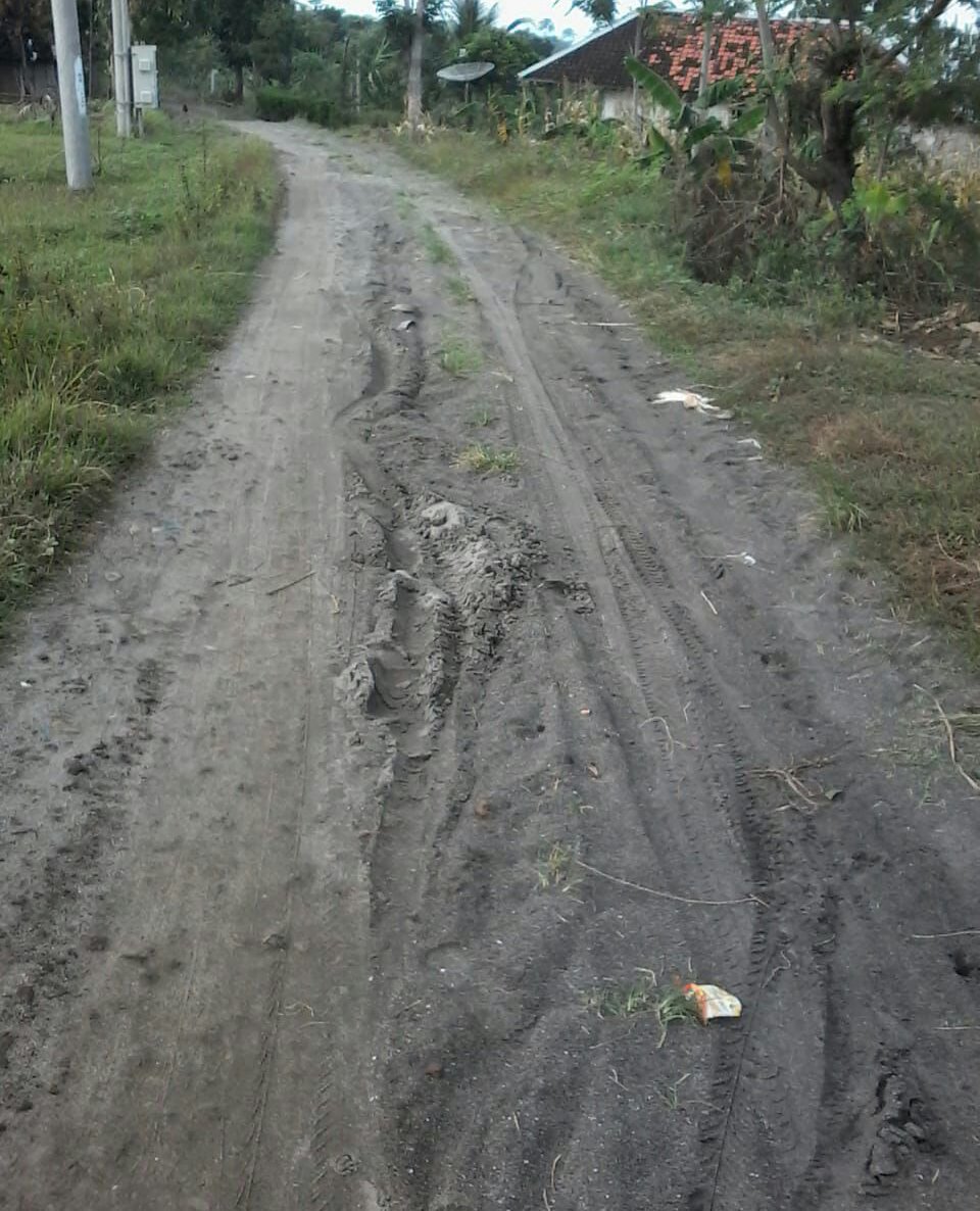Kuat dugaan karena dikerjakan tidak sesuai bestek, maka saat ini kondisi jalan tersebut telah mengalami kerusakan sangat parah.