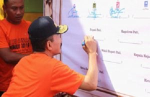 Deklarasi Pemilu Damai disepakati dan dituangkan dalam berita acara serta ditandatangani oleh Bupati beserta Forkompimda, Ketua Bawaslu dan Ketua KPU Pati serta pimpinan Parpol yang hadir. (tim NM/Pati)