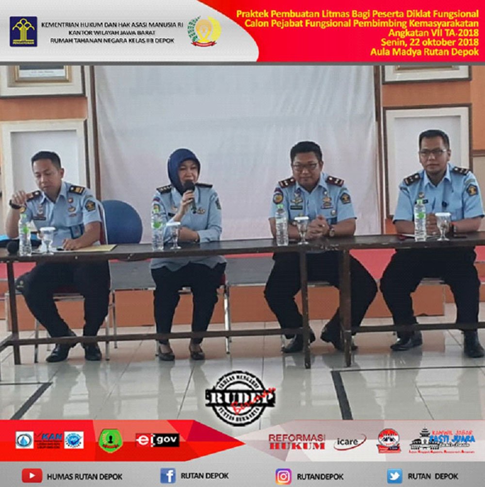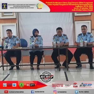 DEPOK, NEWSMETRO.CO~Bertempat diaula gedung III Rumah Tahanan Negara (Rutan) Klas IIB Cilodong, Depok, pelaksanaan teknis dan praktek pemberkasan Linmas bagi peserta diklat fungsional calon pejabat Pembimbing Kemasyarakatan Angkatan VII TA 2018, berjalan lancar. Senin, (22/10/18).