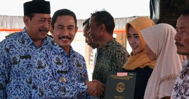 PATI NEWS METRO.CO – Bupati Pati H. Haryanto bersama Badan Petanahan Nasional (BPN) Pati menyerahkan sertifikat program Pendaftaran Tanah Sistematis Lengkap (PTSL) di desa Pucakwangi Kecamatan Pucakwangi. (17/1/19)