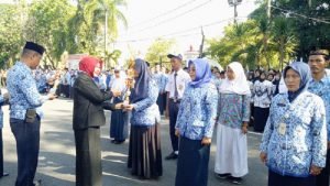 Sementara itu, dalam upacara Hardikas, juga dirangkai dengan penyerahan penghargaan untuk 16 tenaga pendidik. Yakni, juara I bagi guru, kepala sekolah, pengawas berprestasi dan berdedikasi jenjang TK, SD, dan SMP. Kemudian, penghargaan juga diberikan pada juara I Olimpiade Guru Nasional (OGN) jenjang SD, dan SMP. (tim NM/Grob)