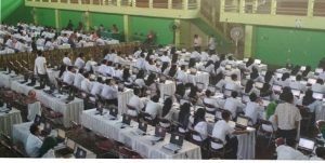 KUDUS NEWS METRO.CO – Sebanyak 44 Desa dengan jumlah 1.394 pendaftar mengikuti ujian menggunakan Computer Assisted Tes (CAT) untuk seleksi pengisian perangkat desa di Kabupaten Kudus, Jawa Tengah. Meskipun sebelumnya beredar informasi sejumlah desa menghentikan tahapan pengisian perangkat desa. Pelaksanaan tes (CAT) tersebut, dipusatkan di GOR Bung Karno Kudus dengan dilakukan secara bertahap. Kamis 01/08/2019.