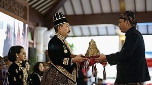 PATI NEWS METRO.CO – Prosesi Jumenengan ritualisasi yang dilaksanakan dalam Kirab Boyongan Peringatan Hari Jadi Ke-696 Kabupaten Pati. Salah satu ritual dalam rangka prosesi Kirab Boyongan di tandai dengan penyerahan pusaka Kuluk Kanigoro dan Keris Rambut Pinutung yang dilakukan Bupati Pati Haryanto pada Sekretaris Daerah Kabupaten Pati Suharyono untuk disimpan. Alur prosesi ini dilakukan setelah Bupati Pati Haryanto menyerahkan pada Sekda Pati Suharyono pusaka Kuluk Kalidoro dan Keris Rambut Pinutung yang telah dikirab dari Pendopo Kemiri Desa Sarirejo, Rabu (7/8/2019) siang.