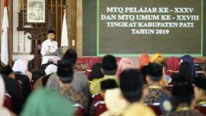 PATI NEWS METRO. CO – Dalam rangka untuk meningkatkan seni membaca dan menulis Alqur’an, serta ketaqwaan, akhlaq dan budi pekerti, sehingga tercipta sumber daya manusia yang berkualitas, Bupati Pati Hariyanto membuka lomba ajang seni MTQ Pelajar XXXV dan MTQ Umum XXVIII tingkat Kabupaten Pati tahun 2019, bertempat di Pendopo Kabupaten Pati, Rabu (11/9/2019).