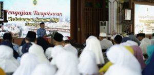 Bupati Haryanto menyampaikan terimakasih atas kehadiran seluruh jamaah, dan juga kepada panitia yang sudah membantu para jamaah mulai dari berangkat hingga bisa pulang dan bertemu dengan keluarganya. “Oleh karena itu hari ini kita wajib bersyukur karena 1081 jamaah telah menunaikan ibadah haji,” ucapnya.
