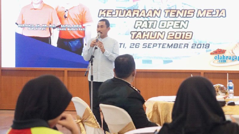 PATI NEWS METRO.CO – Banyaknya atlet luar daerah yang berdatangan di Kejuaraan Tenis Meja Pati Open 2019, membuat kompetisi ini terasa seperti di tingkat nasional. Hal tersebut disampaikan oleh Bupati Pati Haryanto di acara Welcome Party Kejuaraan Tenis Meja Pati Open 2019 di Pendopo Kabupaten Pati, Kamis malam (26/9).