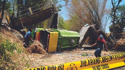 Sejak awal dibangun, truk bermuatan berat memang dilarang melintas jembatan, hanya motor, mobil dan truk bermuatan ringan saja yang bebas mengakses. “Beban truk yang membawa 8.000 liter air bersih merobohkan konstruksi jembatan,” kata Karyadi. “Sebenarnya ada akses jalan lain, namun saat ini dicor. (tim NM/Grob)