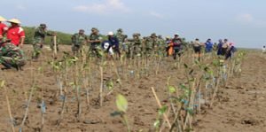 “Menurut berbagai penelitian hutan Mangrove mampu menyerap emisi karbon sebesar 4-5 kali lebih besar dari pada hutan di daratan. Dengan demikian keberadaan hutan Mangrove sangat mendukung upaya penurunan emisi gas rumah kaca, dimana dalam program-program Pembangunan Kementerian Kehutanan termasuk didalamnya pengelolaan,”Ucap Letkol Adi.