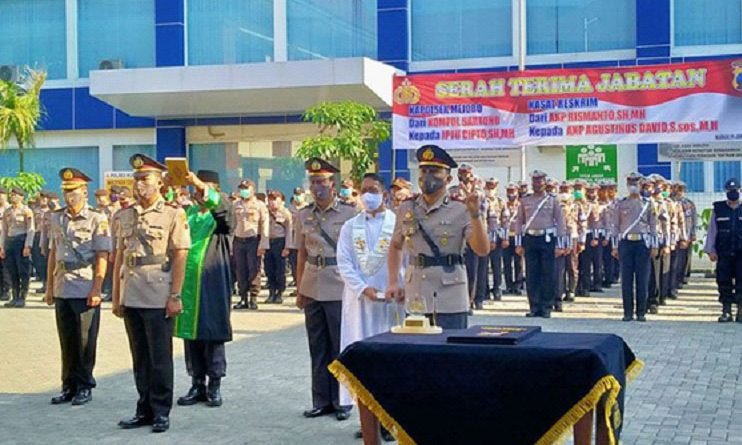 KUDUS, NEWSMETRO.CO – Sabtu, (20/6/2020) dua pejabat di lingkungan Polres Kudus dimutasi. Jabatan yang dimaksudkan yakni Kapolsek Mejobo dan Kasat Reskrim Polres Kudus. Kapolsek Mejobo yang semula dijabat Kompol Sartono kini diganti Iptu Cipto yang sebelumnya menjabat sebagai Kaurbinopsnal Satreskrim Polres Kudus.