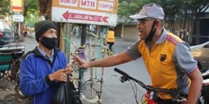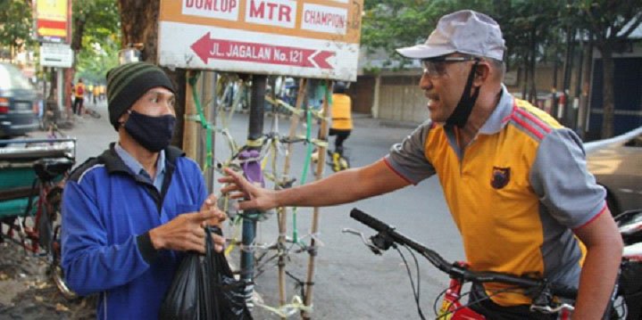 Dalam pelaksanaan gowes tak hanya membagikan sembako rombongan Gowes juga mengingatkan pada masyarakat pentingnya pemakaian masker saat beraktifitas diluar ruangan dalam pandemi wabah corona, kegiatan ini disambut sukaria oleh warga masyarakat semarang. (tim NM/Kudus).