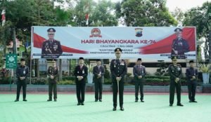 PATI, NEWSMETRO.CO – Bupati Pati bersama jajaran Forkopimda mengikuti rangkaian acara peringatan Hari Bhayangkara Ke-74 di Mapolres Pati, Rabu (1/7). Rangkaian acara dimulai dengan mengikuti upacara secara virtual yang dipimpin langsung oleh Presiden Joko Widodo.
