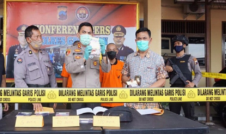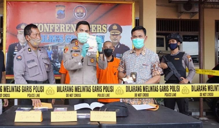 GROBOGANHOT NEWS Sat Res Narkoba Polres Grobogan Bekuk Pengedar Pil Koplo 12 Juli 2020 Redaksi 20 ViewsGROBOGAN, NEWSMETRO.CO – Dua orang yang diindikasikan sebagai pengedar obat terlarang atau pil koplo di wilayah Grobogan berhasil diringkus Polisi. Keduanya adalah Andik Muhriyanto (25), warga Kecamatan Kebonagung, Demak, dan Adri Kurniawan (25), warga Kecamatan Gubug, Grobogan. “Kedua tersangka diamankan Polisi saat berada di sebuah kafe di Kecamatan Gubug hari Selasa 7 Juli 2020, sekitar pukul 22.30 WIB,” kata Kapolres Grobogan AKBP Jury Leonard Siahaan didampingi Kasat Narkoba AKP Ngadiyo saat jumpa pers, Jumat (10/7/2020). Selain tersangka, sejumlah barang bukti berhasil didapat dari keduanya. Yakni, dari tersangka Andik berhasil didapat satu plastik kecil berisi obat tablet warna putih berlogo ‘Y’ sebanyak 140 butir. Kemudian, satu buah HP, satu buah tas pinggang dan satu unit sepeda motor Honda beat. Sedangkan dari tersangka Adri juga berhasil diamankan sejumlah barang bukti. Yakni, satu plastik kecil berisi obar tablet warna putih berlogo ‘Y’ sebanyak 30 butir. Kemudian, ada dua paket plastik klip kecil dan masing-masing berisi 10 butir obat tablet warna kuning berlogo ‘mf’ yang dimasukkan ke dalam bungkus rokok. Kemudian satu kaleng bekas suplemen yang didalamnya terdapat satu plastik kecil berisi lima butir obat tablet warna kuning berlogo “DMP” dan alat kontrasepsi kondom. Selain itu, ada satu HP, uang tunai Rp 150 ribu, dan satu unit motor Honda Revo. ”Kedua tersangka akan dijerat dengan pasal 196 subsider pasal 197 junto pasal 106 UU RI nomor 36 tahun 2009 tentang kesehatan,” jelas kapolres. (tim NM/Grobogan). BACA JUGA Biaya SIM C dan A Di Satpas Badung Bali Di Bandrol 420.000 Dan 450.000, Kasubdit Regident Polda Bali Seola Tidak Perduli.