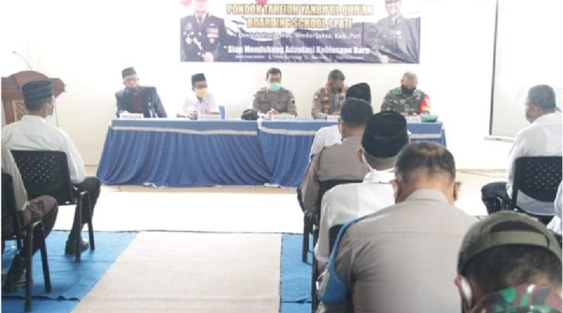 PATI, NEWSMETRO.CO – Pondok Pesantren (Ponpes) Tahfidz Yanbu’ul Qur’an Boarding School 1 Pati yang terletak di Jl.Raya Pati -Tayu Km.6 Ikut Ds. Sukoharjo Kec. Wedarijaksa Kab. Pati, dicanangkan sebagai Pondok Pesantren Siaga Candi Polres Pati, Rabu (05/08/2020).Kegiatan pencanangan Ponpes Siaga Candi tersebut dipimpin oleh Kapolres Pati yang diwakili oleh KAur Bin Ops Sat Binmas, Muspika Kecamatan Wedarijaksa.