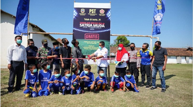 PATI, NEWSMETRO.CO – Wakil Bupati Saiful Arifin (Safin) menyaksikan pelantikan pengurus Karang Taruna “Wira Rahagi” dan meresmikan Sekolah Sepakbola (SSB) Satria Muda Desa Tunjungrejo Kecamatan Margoyoso, Rabu (5/8/2020). Pelantikan ini turut dihadiri Sekretaris Camat Margoyoso dan Muspika Margoyoso.