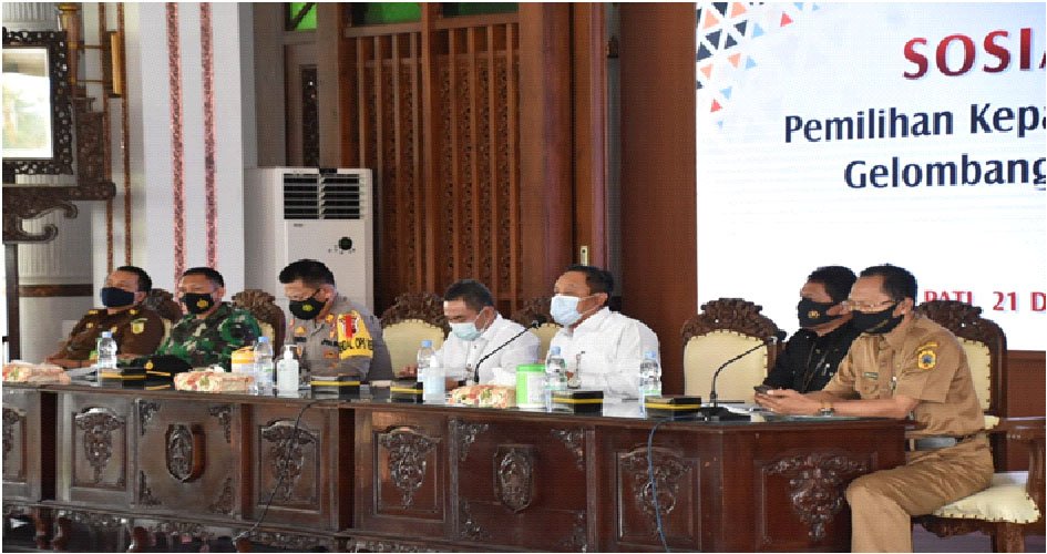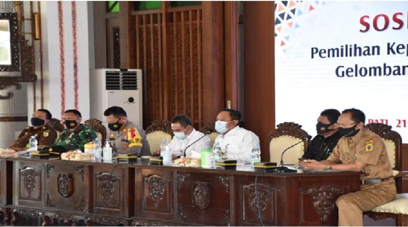 PATI.NEWSMETRO.CO – Hadiri Sosialisasi Pemilihan Kepala Desa (Pilkades) Serentak Gelombang 1 Tahun 2021 di Pendopo Setda Kabupaten Pati, Senin (21/12), Bupati Pati Haryanto bersama Wakil Bupati Pati Saiful Arifin (Safin), menyampaikan regulasi terkait pelaksanaan Pilkades serentak di tengah pandemi.