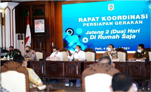 PATI.NEWSMETRO.CO – Pemerintah Kabupaten Pati mendukung penuh Gerakan Jateng di Rumah Saja, namun penerapannya disesuaikan dengan kondisi dan kearifan lokal.Hal itu disampaikan Bupati Pati, Haryanto, saat memimpin Rapat Koordinasi (Rakor) Gerakan Jateng di Rumah Saja, Kamis (4/2/2021), bertempat di pendopo Kabupaten Pati.