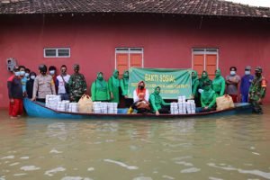 Dengan berperahu, rombongan langsung menyambangi dan menghampiri warga dari rumah ke rumah.”Hari ini Persit Cabang XXXIX Kodim Pati melaksanakan bakti sosial di Desa Purworejo Kecamatan Pati, sebagai bentuk kepedulian terhadap korban banjir. Karena masih terkendala pandemi dan tidak bisa mengumpulkan orang banyak, sehingga kami mendatangi rumah ke rumah”, kata Iing Adi Ilham.
