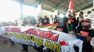 Beragam tulisan spanduk para pengunjuk rasa “Pak Jokowi Presidenku”Tolong Perhatikan Nasib Kami, Nelayan Indonesia. Namun disisi lain bertuliskan”Ganti Menteri Perikanan.