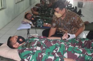 Donor Darah Kodim 0718/Pati Sambut HUT Ke-76 TNI