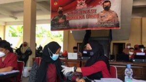 Untuk petugas Vaksinator berasal dari petugas Poliklinik Polres Grobogan. Kegiatan vaksinasi dimulai pada pukul 08.30 wib dengan menerapkan protokol kesehatan secara ketat, baik petugas maupun terhadap peserta vaksinasi yang diawali dengan pendataan peserta yang hadir.