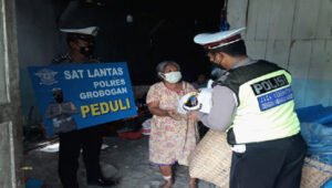 “Kami dari Sat Lantas Polres Grobogan menyisihkan sedikit penghasilan untuk berbagi kepada sesama yang membutuhkan dimasa pandemi covid-19 dan penetapan PPKM Level 3.