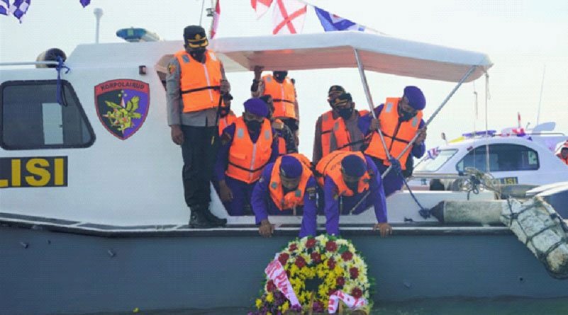 Kapolres Pati AKBP Christian Tobing yang memimpin jalannya prosesi tabur bunga di laut bersama pejabat Polres Pati. Dengan menumpang dua unit kapal dan dua perahu karet yakni 1 kapal IX 1024 Sat Polairud Res Pati dan 1 Kapal IX 1016 BKO Ditpolairud Polda Jateng, serta 2 Perahu Karet Sat Polairud dan 1 Perahu Karet 03 TNI-AL.