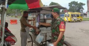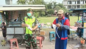 Selain menyampaikan himbauan penerapan prokes, petugas gabungan juga tampak bagikan masker kepada masyarakat yang kedapatan tidak bermasker saat aktivitas di tempat tersebut. (tim NM/Pati).