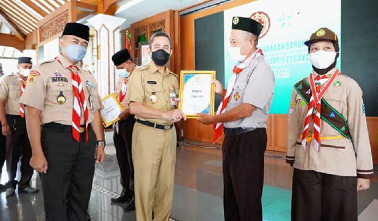 PATI-NEWSMETRO.CO – Setelah memenangkan kejuaraan barung tergiat pesta siaga tahun 2022, lima kwartir ranting gerakan Pramuka terima penghargaan. Penghargaan dari Kwarcab Kabupaten Pati tersebut diserahkan langsung oleh Bupati Pati Haryanto di Pendopo Kabupaten Pati, Selasa (15/03/2022).