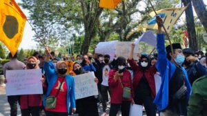 GROBOGAN-NEWSMETRO.CO – Mahasiswa Grobogan adakan aksi demonstrasi di depan gedung DPRD Grobogan pada Senin, 11 April 2022. Demo ini dilakukan guna menyampaikan sejumlah tuntutan mulai dari penolakan perpanjangan jabatan presiden hingga penertiban karaoke tak berizin di Grobogan.