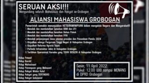 Dalam kelompok aksi mengatasnamakan diri sebagai Aliansi Mahasiswa Grobogan. Aksi mereka dimulai pukul 12.00 WIB. Selebaran itu juga memuat sejumlah tuntutan yang disampaikan dalam aksi damai ini. Mulai penolakan perpanjangan jabatan presiden hingga penertiban karaoke tak berizin di Grobogan.