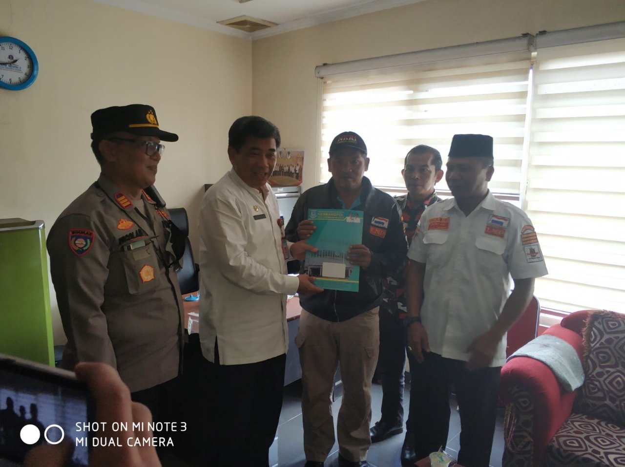 Perwakilan LMP Marcab Tangsel disambut Kepala Kesbangpol Drs.Chaerul Soleh,M.Si didampingi Sekban Salbini dan disaksikan perwakilan polres tangsel iptu Vicolas dari polsek Serpong dan juga perwakilan kodim 0506 Tangerang.