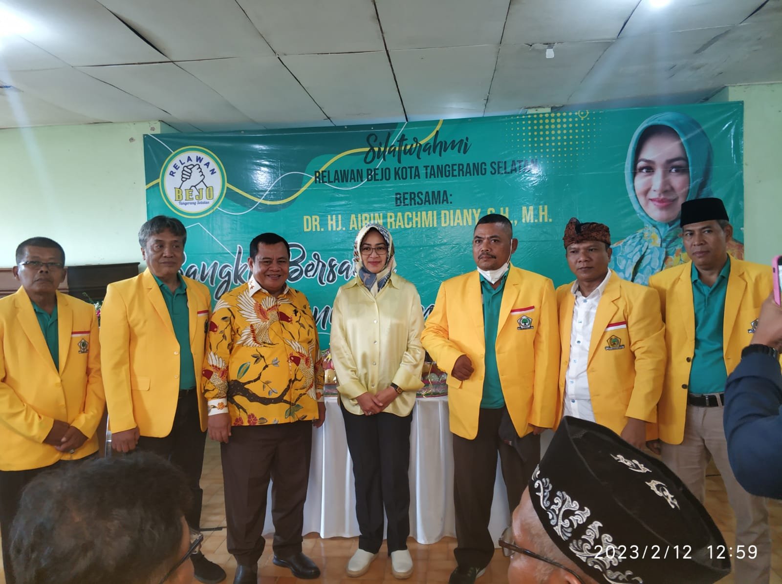 Dalam kesempatan kegiatan ini, ketua relawan Masruri Bejo secara simbolis ketua DPD Golkar DR.Hj.Airin Rachmi Diany,SH,MH memakaikan Jas Kuning sebagai bukti bahwa relawan bejo akan bergabung dengan partai Golkar.