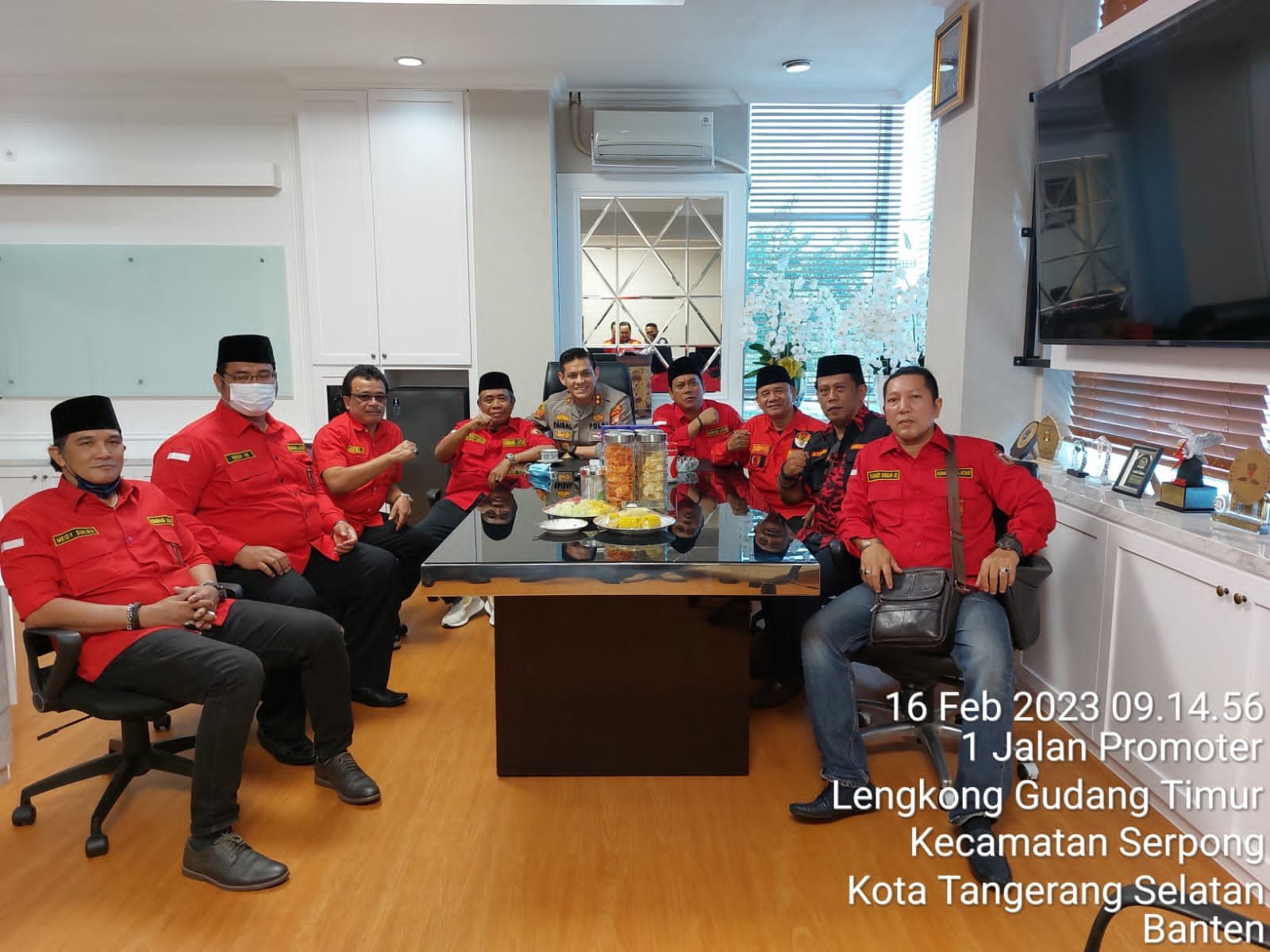 Tangsel | NEWSMETRO.CO — Untuk menjaga kondusifitas di tempat tugas baru Kapolres Tangerang Selatan AKBP Faisal Febrianto silahturahmi dengan ormas di Tangsel , salah satunya ormas kembang Latar DPC Kota Tangerang selatan ( 16/02) di Mapolres Jl. Promoter No.1, Lengkong Gudang Tim., Kec. Serpong, Kota Tangerang Selatan