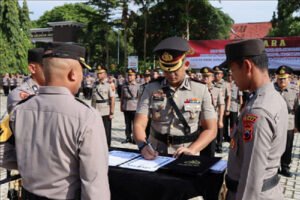 PATI.NEWSMETRO.CO – Kepala Kepolisian Resor Kota Pati (Kapolresta) Kombes Pol Andhika Bayu Adhittama, S.I.K, M.H pimpin Serah Terima Jabatan (Sertijab) 6 Kasat dan 5 Kapolsek, bertempat di halaman Mapolresta Pati, Senin (20/02/2023) Pagi.