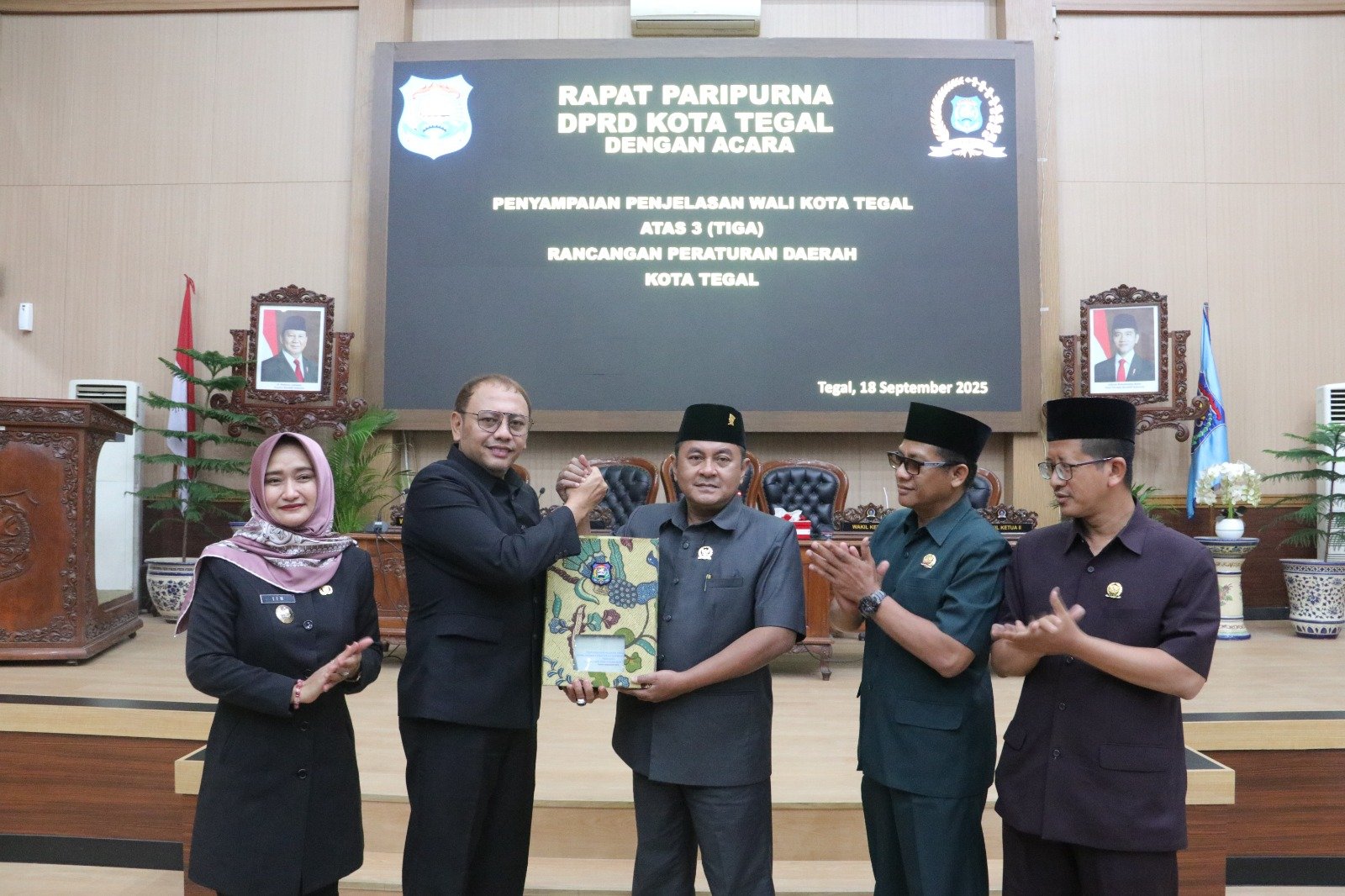 Berdasarkan keputusan DPRD Kota Tegal Nomor 22 Tahun 2024 tanggal 12 November 2024 tentang Penetapan Program Pembentukan Peraturan Daerah Kota Tegal Tahun 2025 terdapat 14 (empat belas) raperda yang perlu dilakukan pembahasan dan penetapan, sesuai hasil rapat Badan Musyawarah (Banmus) DPRD pada hari Kamis tanggal 11 September 2025 telah disepakati 3 (tiga) raperda untuk dilakukan pembahasan bersama alat kelengkapan DPRD,” ujar Walikota Tegal.